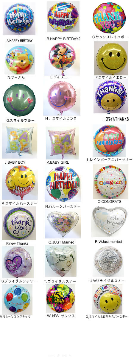 )A.HAPPY BIRTDAYB.HAPPY BIRTDAY2C.サンクスレインボーD.プーさんE.ディズニーF.スマイルイエローG.スマイルブルーH.スマイルピンクI.スマイルTHANKSJ.BABY BOYK.BABY GIRLL.レインボーアニバーサリーM.スマイルバースデーN.バルーンバースデーO.CONGRATS!P.new ThanksQ.JUST Married R.WJust merried S.ブライダルシャワーT.ブライダルスノーU.W,ブライダルスノー V.バルーンコングラッツW.NEWサンクスX,スマイルホログラムバースデーY.Z
