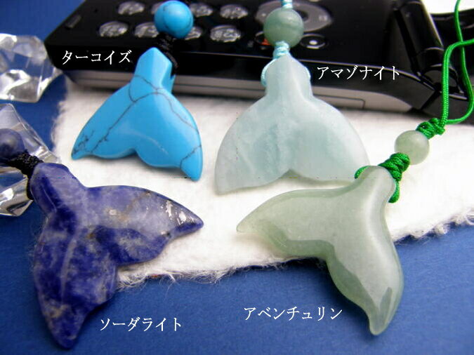 携帯ストラップ くじら尾ストラップ 天然石 パワーストーン
