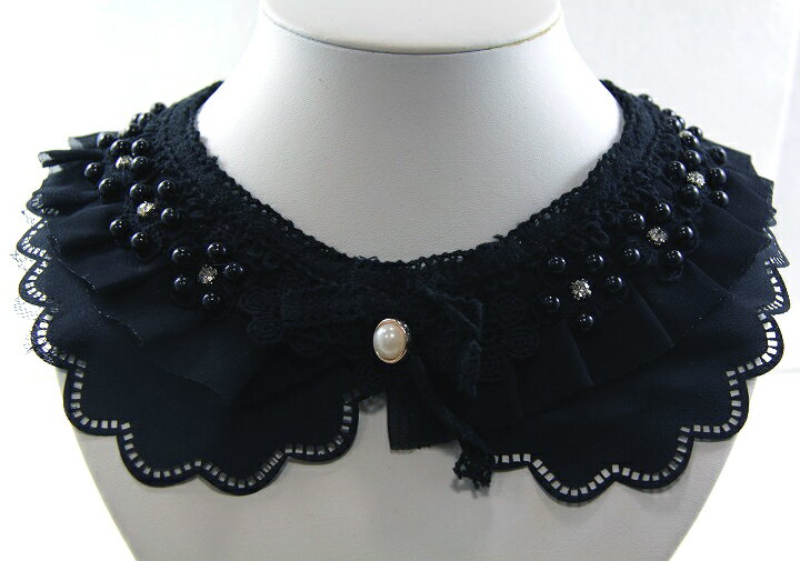 ブラックビジューのラウンドカラー黒レースつけ襟
