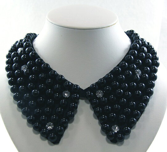 【送料無料!】ブラックビジューのサークル型つけ襟